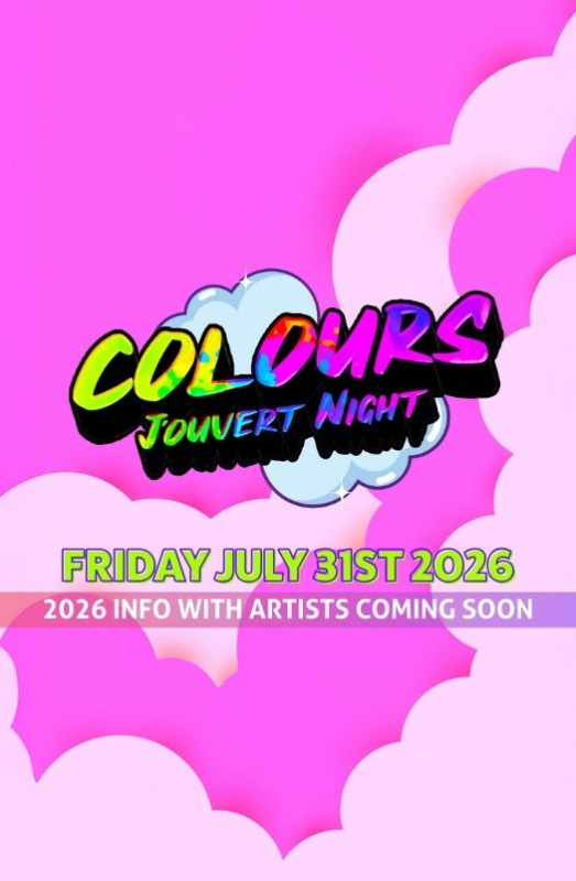 Experience the ultimate J'ouvert celebration at COLOURS on Friday, August 1st, where powder and foam come together to create a vibrant and immersive experience. Join us as our world-renowned artists take the stage, and get ready to be drenched in a rainbow of colours!
